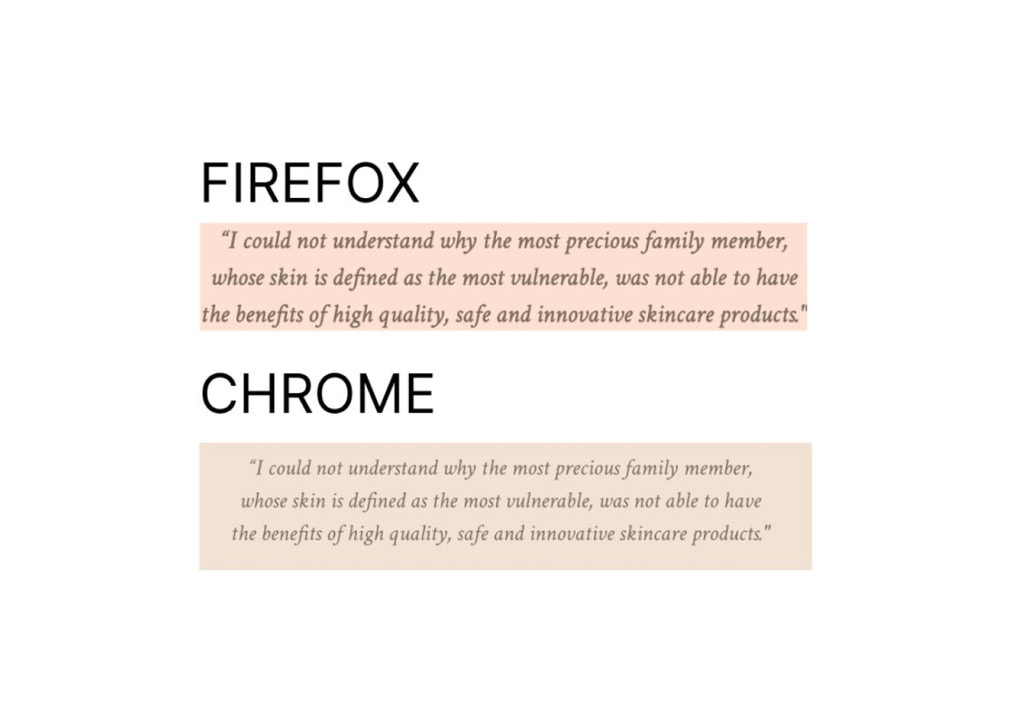 It turns out that font weights are still a sore point between the browsers -- even in 2022! Firefox renders the base weight as 400 (normal), while chrome can render it lower (200, or light in font-speak). Which entirely changes this dainty font into something really harsh.